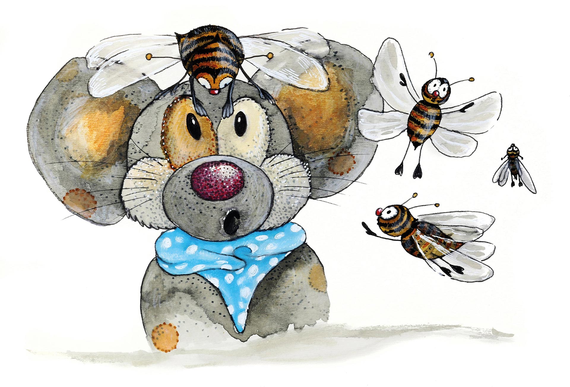 „Mmmmm, ist das köstlich“, jauchzte die Honigpunktmaus und verschlang gleich das ganze Törtchen. Dann holte sie aufgeregt ihr Honigglas aus dem Rucksack und gab es der Himbeerpunktmaus.